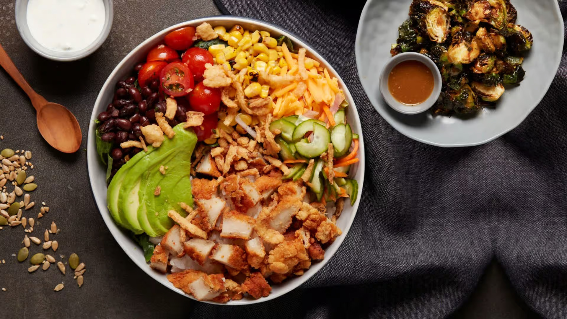 Pick your choice of any bowl and any side. All bowls and sides come with a dressing on the side. (No modifications possible)