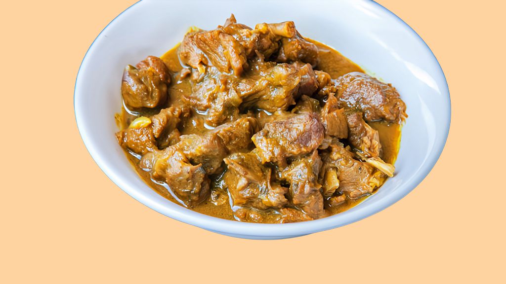 Savor a delicious portion of goat meat, expertly marinated in a blend of aromatic spices and cooked fresh in a rich curry.