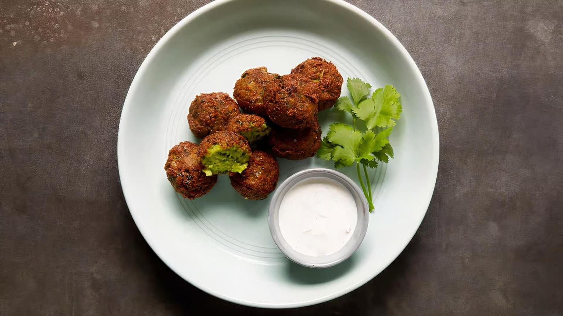 Crispy edamame falafel with tzatziki dipping sauce