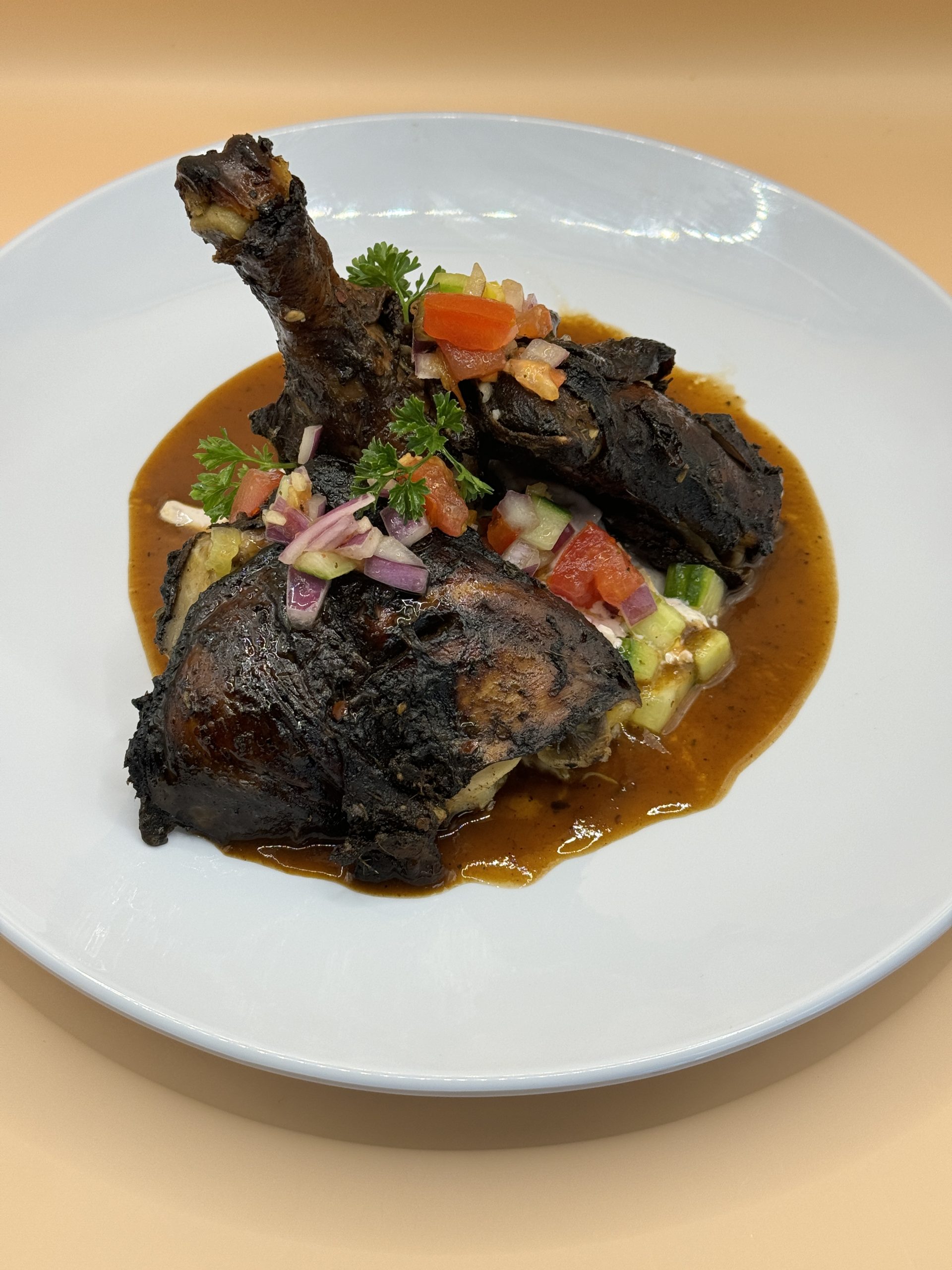 Tender chicken marinated in authentic jerk seasoning, delivering a spicy kick with every bite.